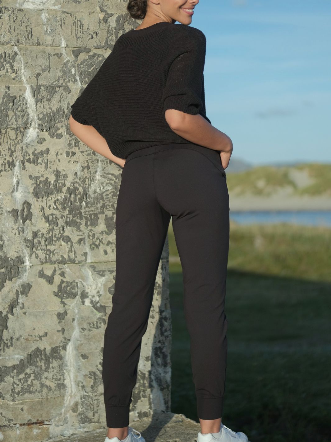 Endelig en joggebuksen man føler seg flott i! Deilig stoff, flott passform, og fine detaljer som brodert logo, flatterende sømmer over baken og langs sidene. To gode lommer og snøre-mulighet. Fin svart farge som kan kombineres med det aller meste. Joggebuksen kan brukes til trening eller kos hjemme. Eksklusiv bred strikk i midjen som sitter godt og føles deilig.