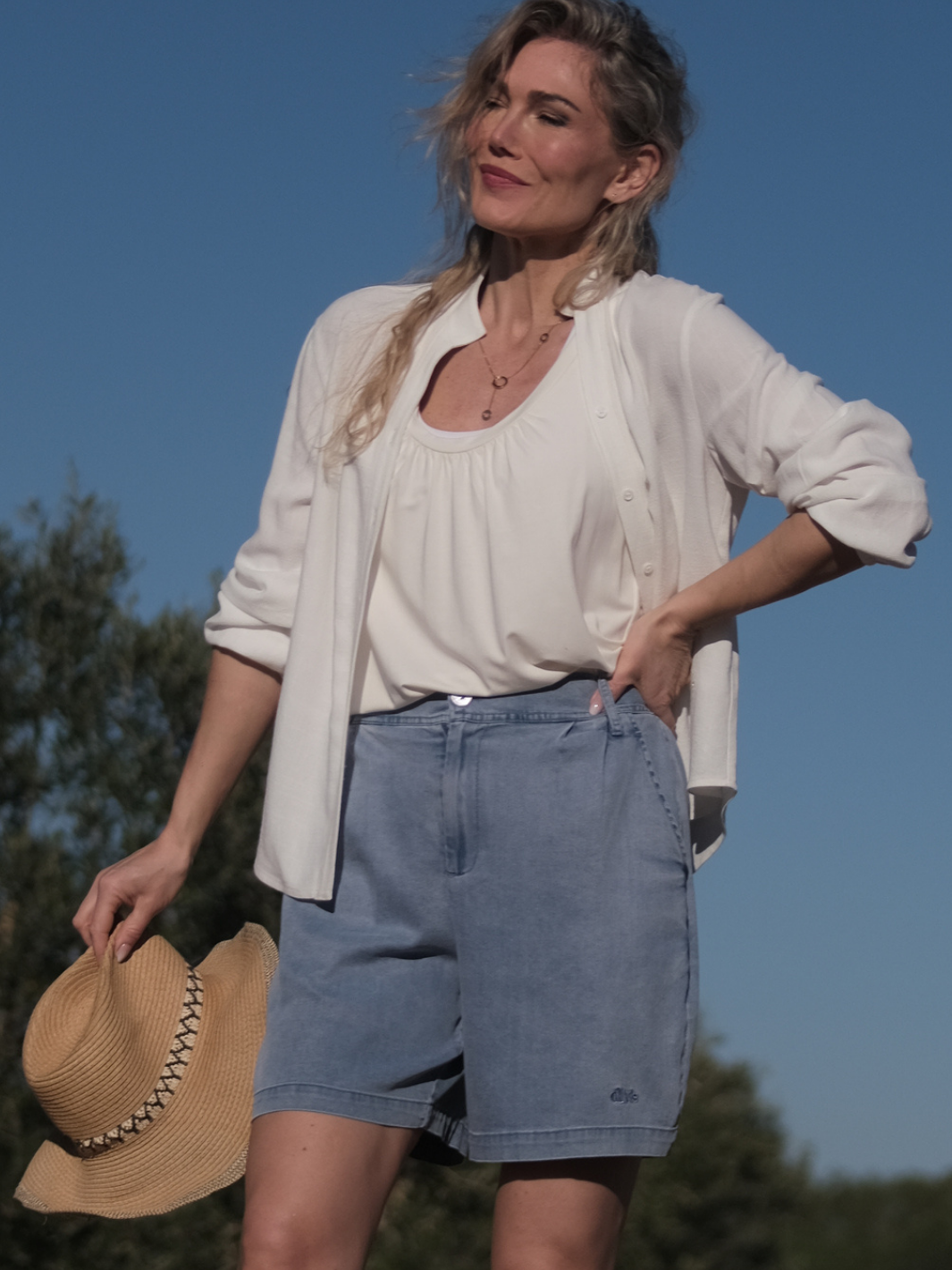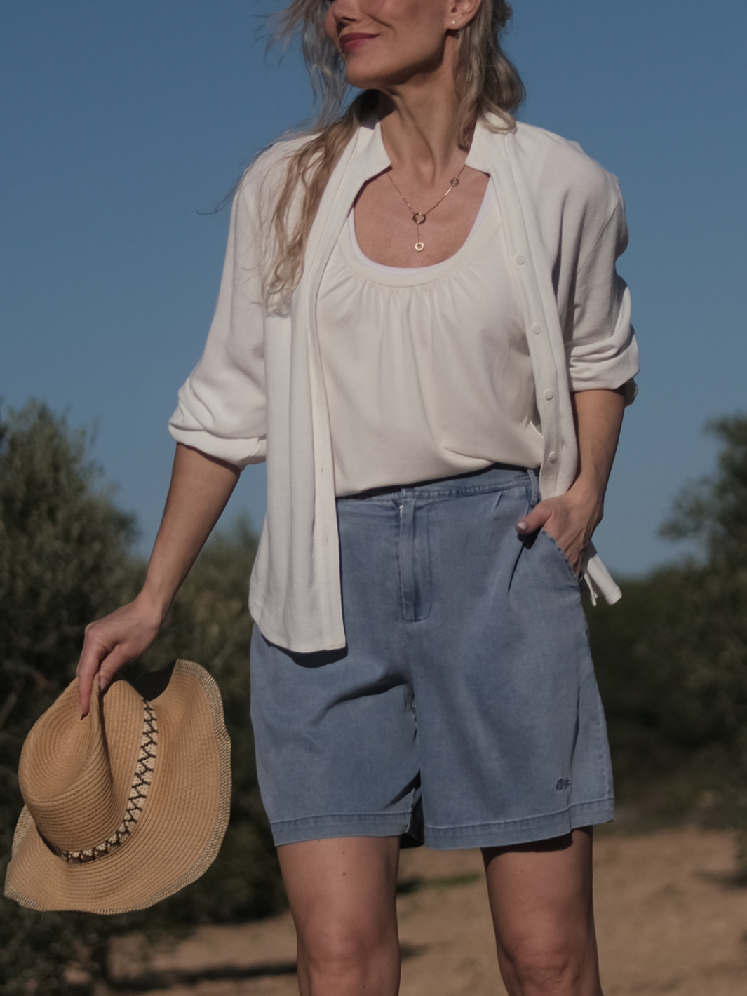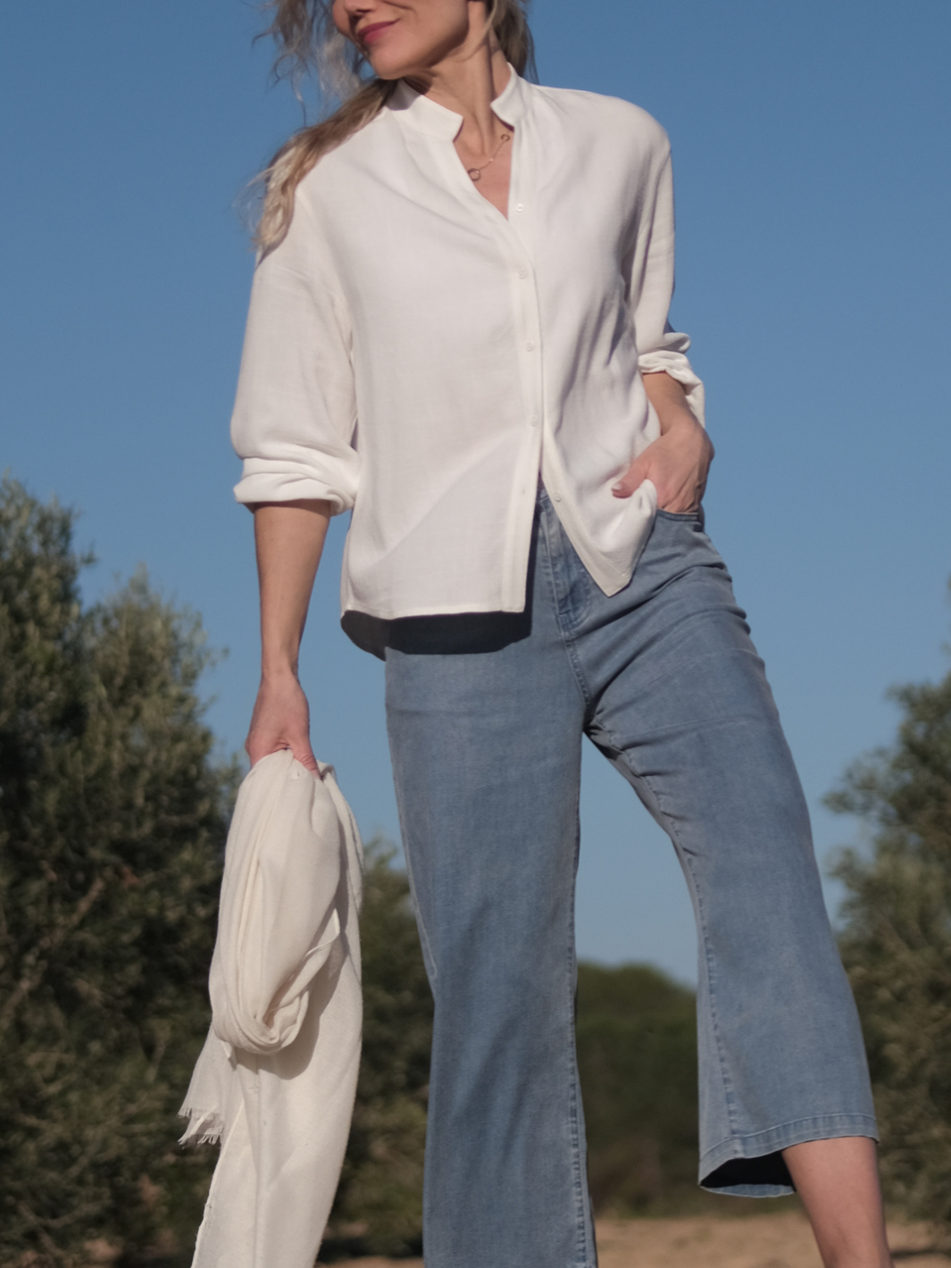 En lett og nydelig favoritt du bruker igjen og igjen. Myk linblanding med delikat struktur som faller pent og føles sval mot huden. Strikk nederst i ermene gjør den enkel å trekke opp for en mer avslappet stil, mens den rene halsen og fine detaljene gir et feminint uttrykk. Bruk den åpen som en lett jakke, kneppet og stylet i bukse eller skjørt – eller knyt den foran for en mer avslappet look. Like fin til hverdag som til hyggelige anledninger. Romslig design